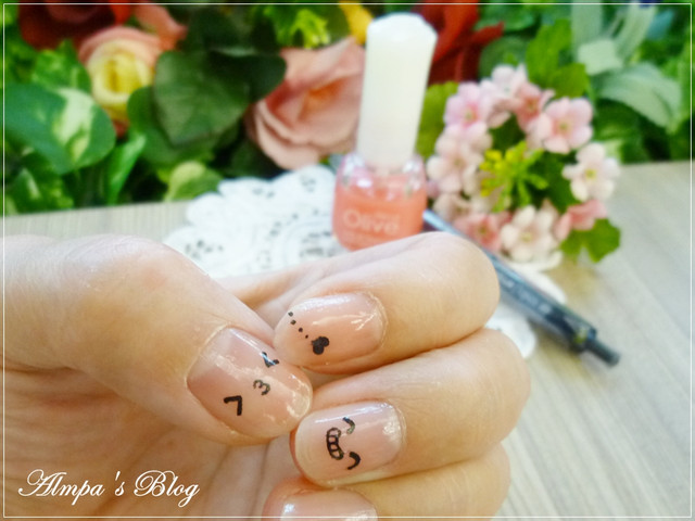 畫完自己覺得頗可愛後~覺得大拇指版面頗大,可以畫一下~就讓大拇哥去吻笑臉吧~