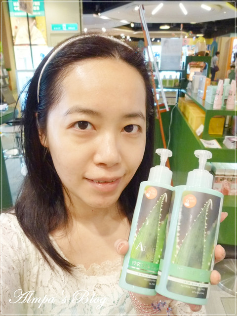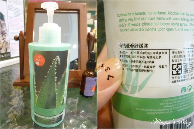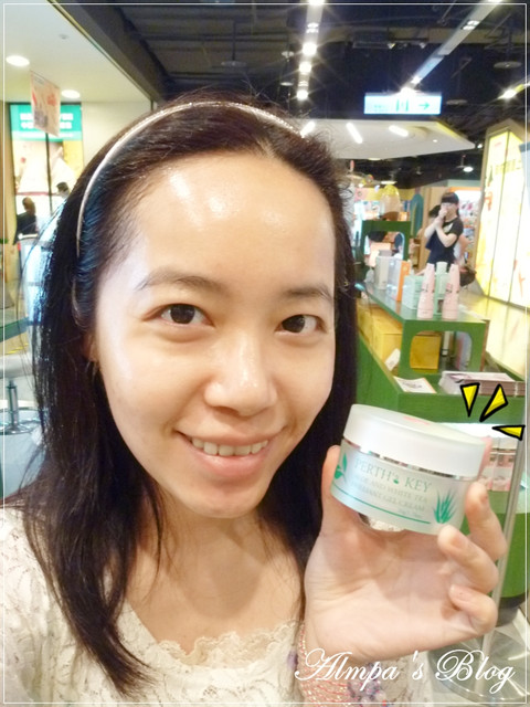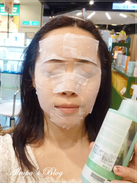 櫃姐眼看我的內心小劇場即將爆炸,索性封我口.... 先以有機蘆薈紓緩膠敷全臉~