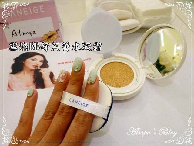 以海棉輕壓沾取雪燦舒芙蕾BB水凝霜,質地輕盈,還有涼感!!!!