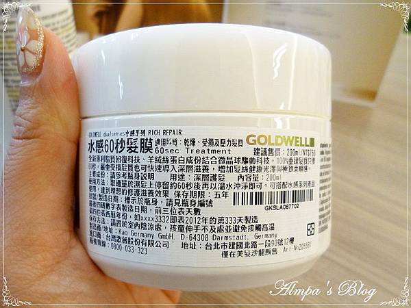 還有GOLDWELL水感60秒髮膜能挽救!給妳柔軟滑順的秀髮~