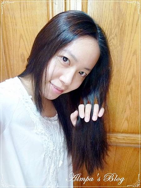 這就是我秀髮烏黑亮麗又滑順的小祕密唷~!先前染壞時的斷裂稻草已不復再~現在是健康柔軟的漂亮髮絲唷!