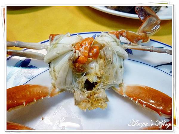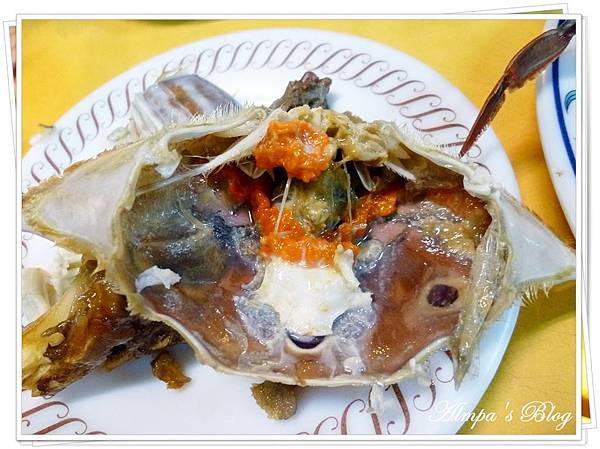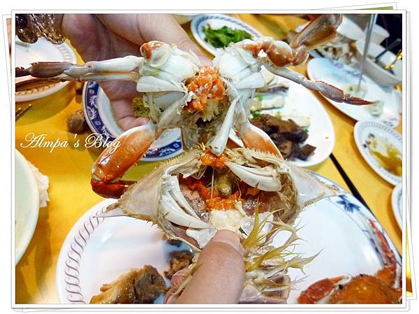 看得出肥美飽滿的蟹黃與蟹肉~除了讚嘆彭董好眼光之外,我還是不懂呀~淚奔~吃個飯讓我這麼疑惑是怎樣啦!