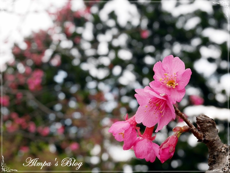 更扼腕的是,後門兩株盛開的大寒櫻,觀展後才發現;才拍一張就沒電了....哭哭