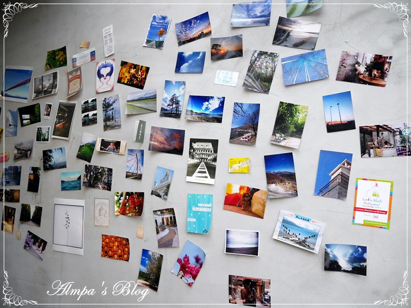 工業風的風扇正努力讓空氣對流不顯得沉悶,自然灑下的光線,讓明信片上的藍,藍得讓人嚮往~