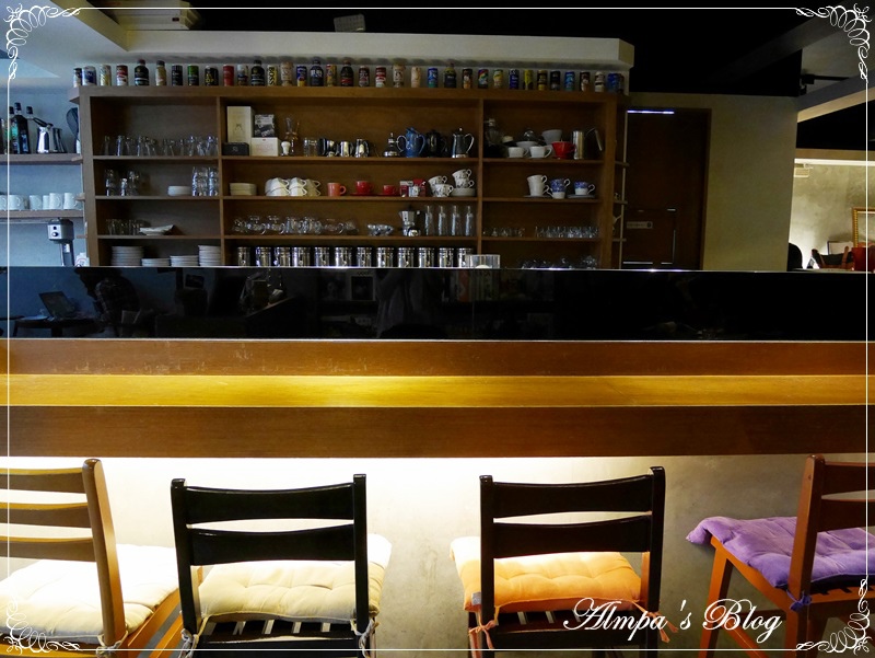 一整排的吧台,欣賞手煮咖啡的好位置;很貼心的附有椅墊。
