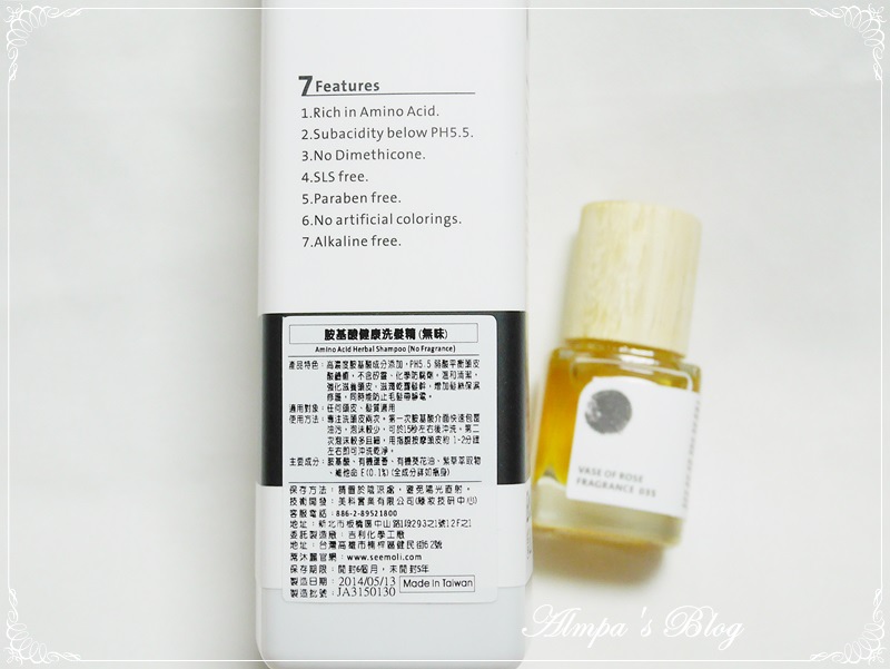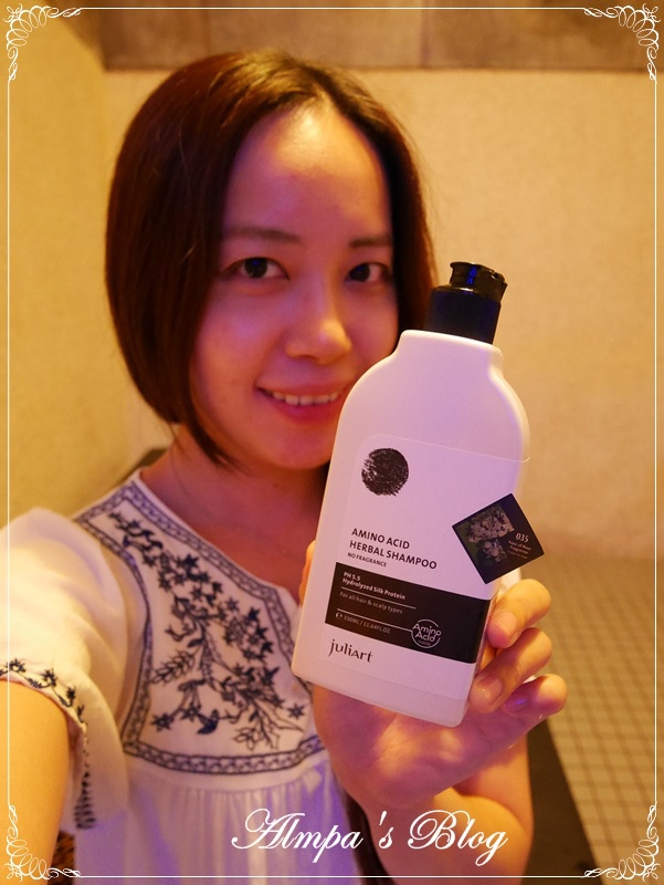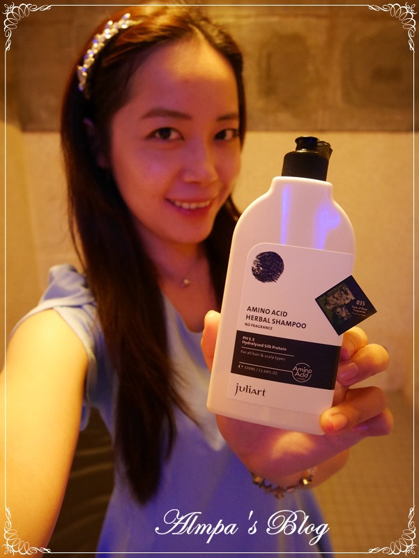 添加高濃度胺基酸、pH5.5的弱酸性My Juliart 胺基酸健康洗髮精,不含矽靈、化學防腐劑,另添加了有機蘆薈、有機葵花油、紫草萃取物等成分,